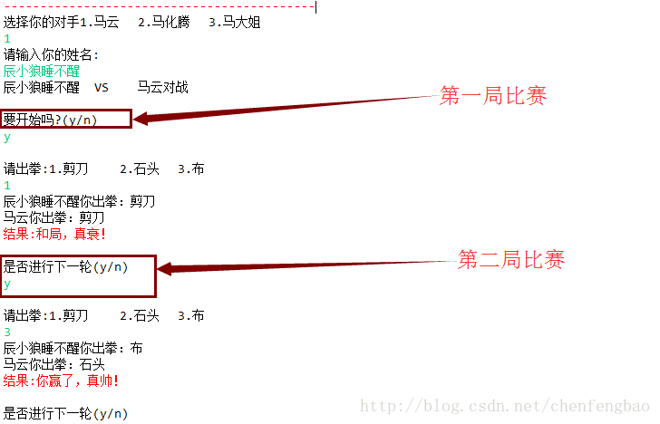 //输出出拳结果并返回