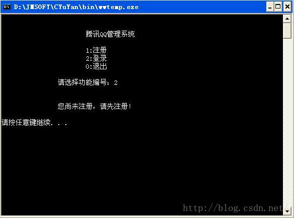 printf("\n\n\t\t您尚未注册,请先注册!\n\n");