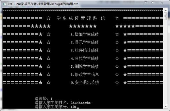 cout<<"〓〓〓〓〓〓〓〓〓★ ☆ 1.增加学生成绩 ☆ ★〓〓〓〓〓〓〓〓〓"<<endl;