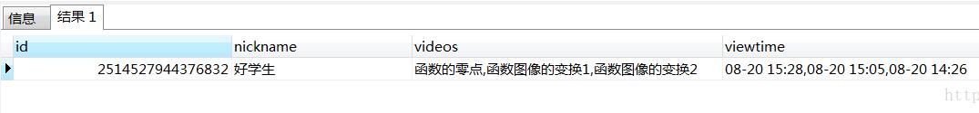 下面的语句是我用来查询一个学生在什么时间看了哪些视频: