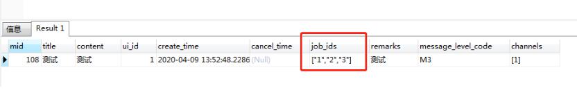 SELECT tdnm.mid, tdnm.title, tdnm.content, tdnm.ui_id, tdnm.create_time, tdnm.cancel_time, tdnm.job_ids, tdnm.remarks, tdnm.message_level_code, tdnm.channels FROM tb_data_notify_message tdnm WHERE 1=1 and json_arr2text_arr(tdnm.job_ids) &&array[['1','10']] ORDER BY create_time DESC