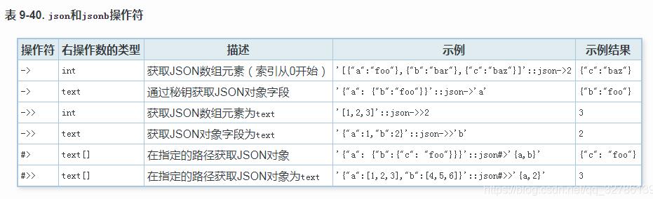 -> 数组中是查找第几项,json中是取某key的元素object ->> json中是取某key的元素text #> json中是通过路径取元素object #>> json中是通过路径取元素text