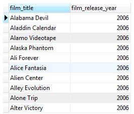 在函数中,我们返回一个查询(select 语句)作为返回结果。注意select语句中的字段必须和返回表的字段类型一致。因为film表中release_year的数据类型不是integer,所以我们要使用cast函数转换成integer。