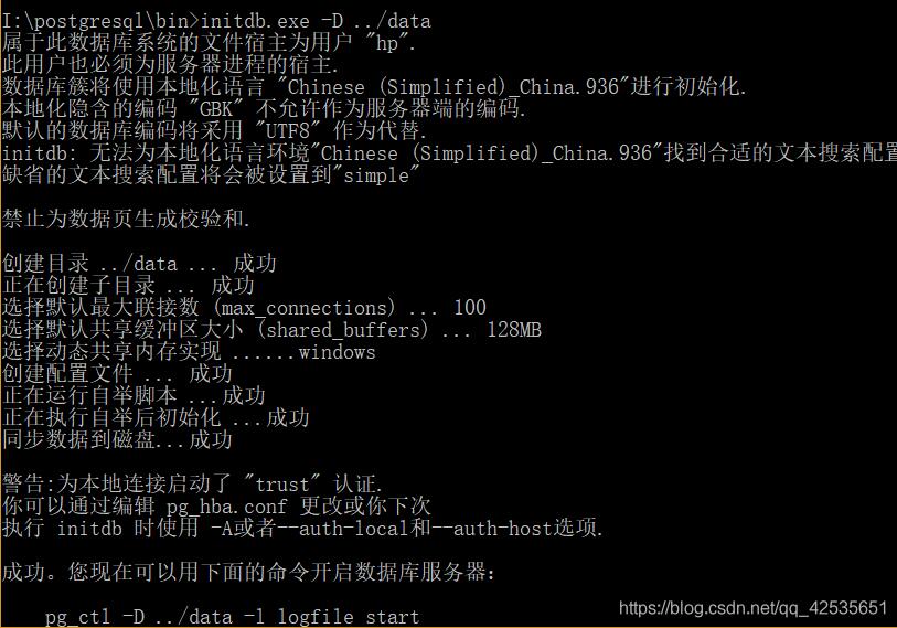 在cmd中进入postgresql下载地方的bin目录里。初始化pgsql: