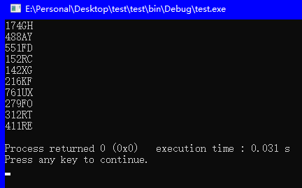 运行,因为srand语句在循环内,每一次都用时间做种,程序执行速度很快,所以获取时间精度内,数值不便,于是每一次循环都是一样的,如果把srand()放在循环外,就能产生不同的不同的序列:结果就是下面这样: