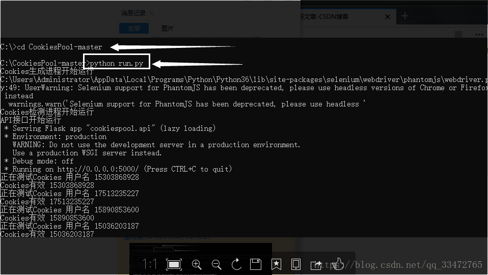 随机获取Cookies: http://localhost:5000/weibo/random(注意:cookie使用时是需要后期处理的!!)