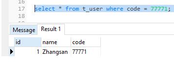select * from t_user where code = 77771;