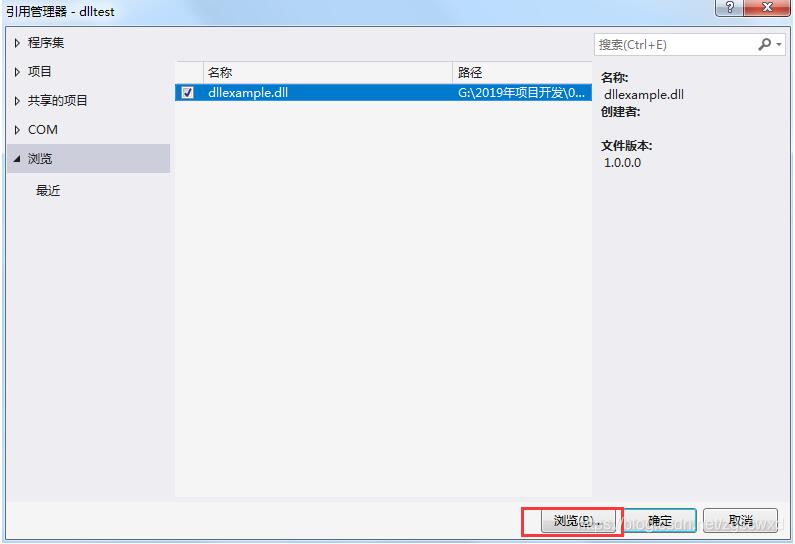中引用管理器中,点击浏览,选中子文件夹中的dll文件。