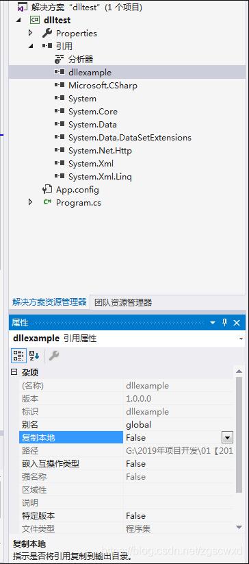 点击添加成功的引用,将“复制本地”改成false(不然程序运行的时候会将子文件夹下的dll文件复制到根目录中)。