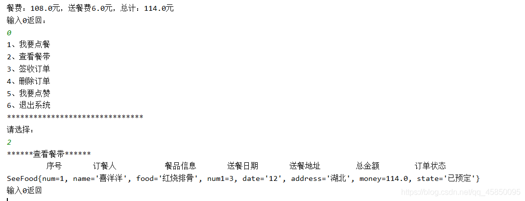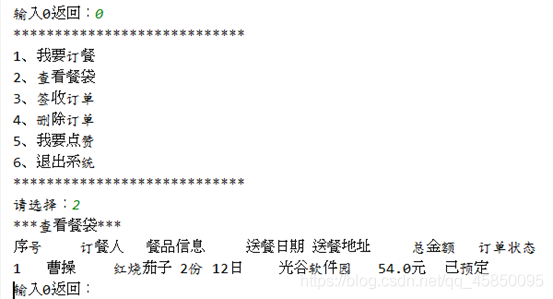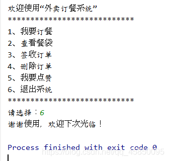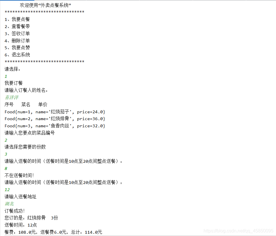 使用选择结构,循环结构,数组的知识实现一个外卖订餐系统