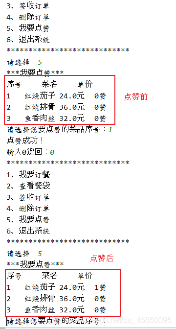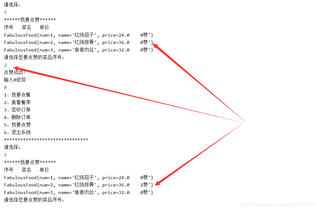 System.out.println("请选择您要点赞的菜品序号:");
