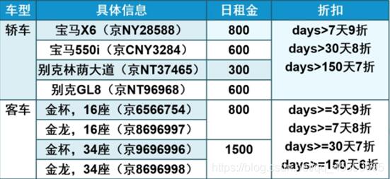 1.汽车租赁信息表如下