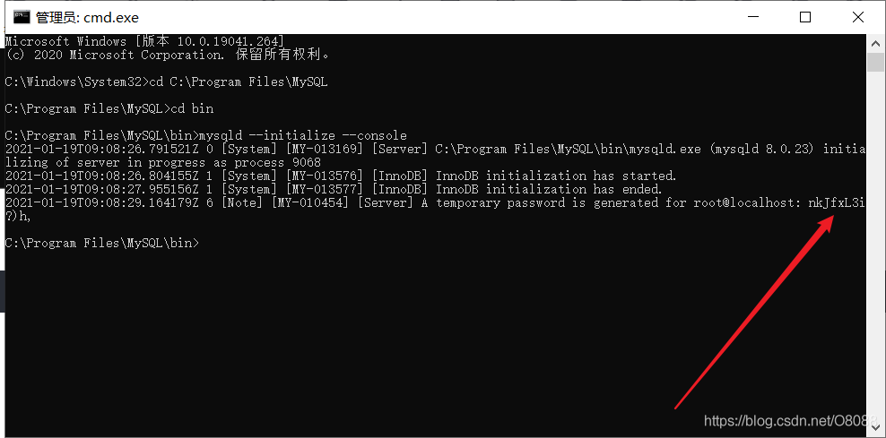 运行cmd(管理员方式)然后cd到mysql目录的bin文件夹