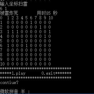 int ret=sweep_mine();//扫雷,踩到雷返回1,没有踩到雷返回0
