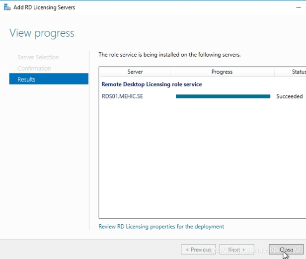 确认选择,然后单击添加。等待角色服务部署完毕,然后单击“关闭”。