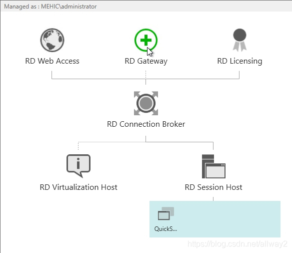 如您所见,该部署缺少RD网关服务器和RD授权服务器。