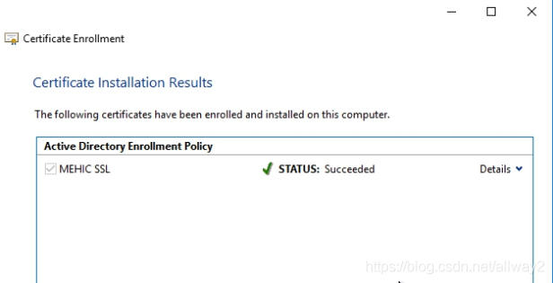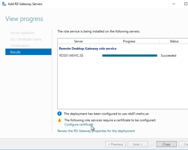 点击下一步并添加。等待角色服务部署完毕,然后单击“ 配置证书”以查看“证书选项”