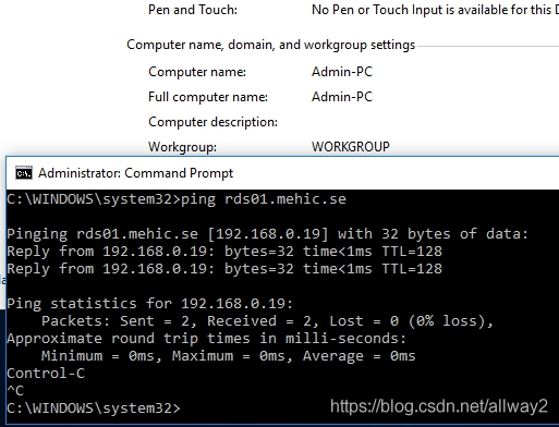 第一步:使用“mstsc /admin /v:目标ip”来强制登录服务器(注意只能管理员身份登陆)