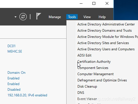 打开服务器管理器?>工具?>证书颁发机构