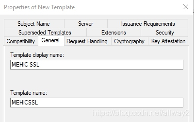 将会弹出新模板窗口。我要做的第一件事是在“常规”选项卡上将证书名称更改为MEHIC SSL。