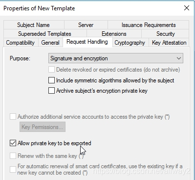 接下来,单击“请求处理”选项卡,然后选中“ 允许导出私钥”。