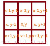 假设我们首先点开了棕色区域中心点,那么接下来 从x-1,y-1以顺时针方向开始探索。此时我们进入到第一个if中,检查条件,exam该点默认为0,表示我们没有操作过它。