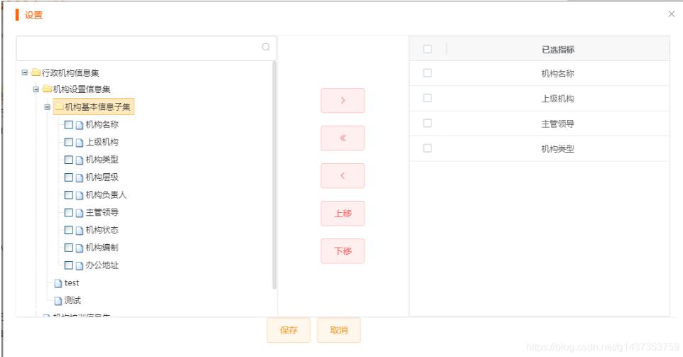 2、右侧选中的内容移动到左侧树中,单一移动和全部移动