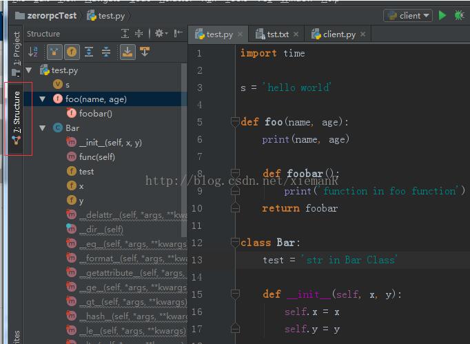 补充:PyCharm使用技巧:Structure(列出代码结构)