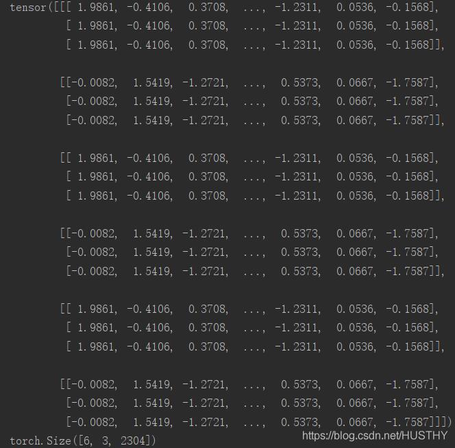 c表示对a的对应维度进行乘以3,乘以3,乘以3的操作,所以c:torch.Size([6, 3, 2304])
