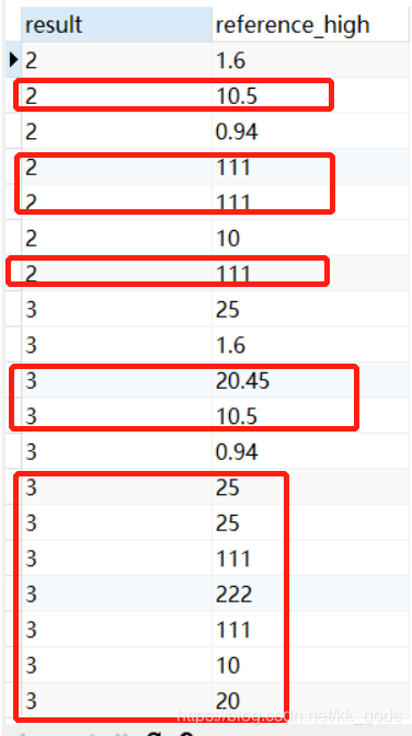 有一张如下图所示的表,需要我们查出 result 值大于 reference_high值的数据