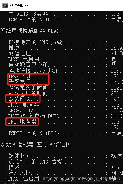 查询宿主机IP信息命令:ipconfig /all