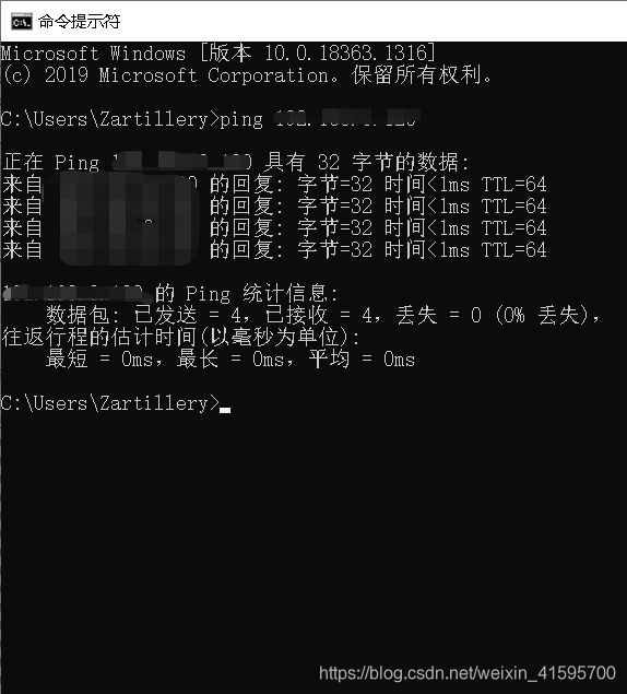 接下来在虚拟机和宿主机之间相互ping IP地址,查看是否联通