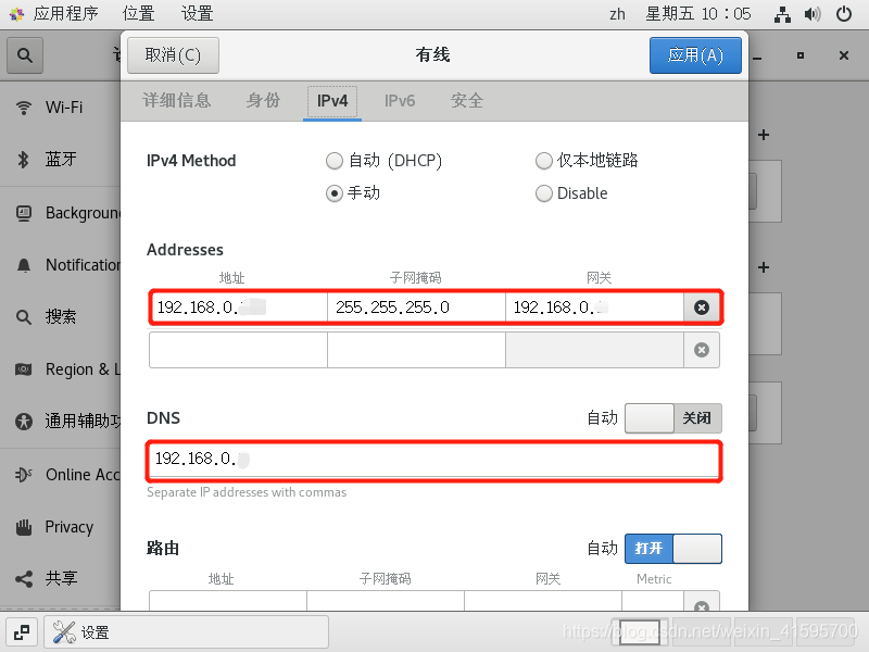 修改虚拟机的IPV4,在修改前先查询宿主机的IP信息,需保证宿主机和虚拟机的IP在同一网段,然后进行修改