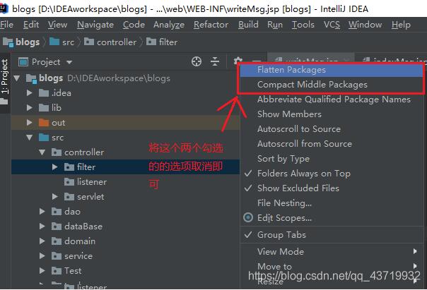 但是这么显示,有时会因为包的同级显示,使得包使得包的显示过多,此时就可以改变显示的方式: