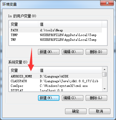 Android SDK安装完成后,新建ANDROID_HOME环境变量,值为上图Android SDK Location的目录(我这里是“D:\Language\ASDK”)