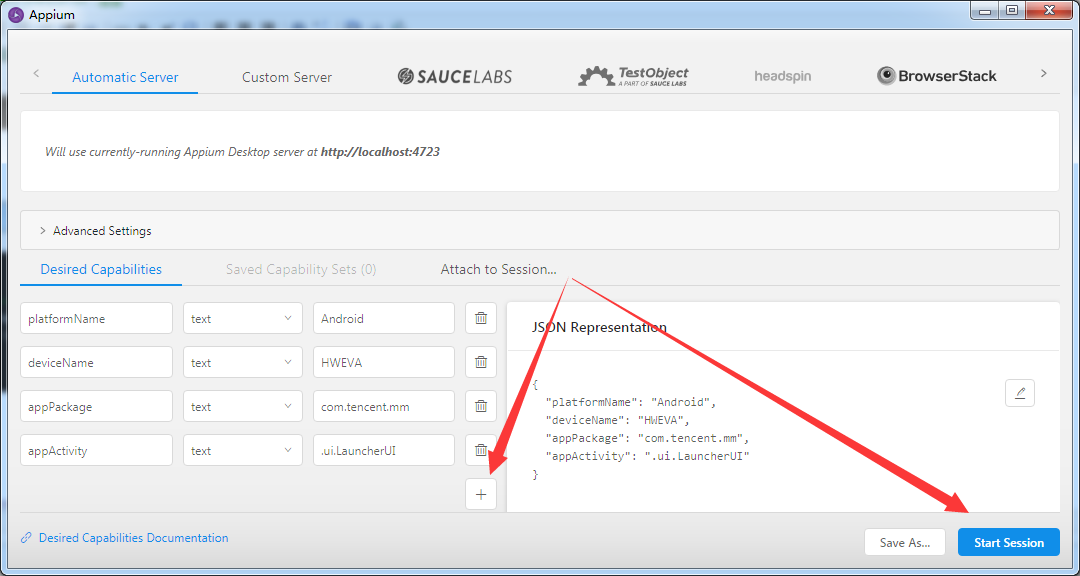 添加以下四项值,完后点击“Start Session”。