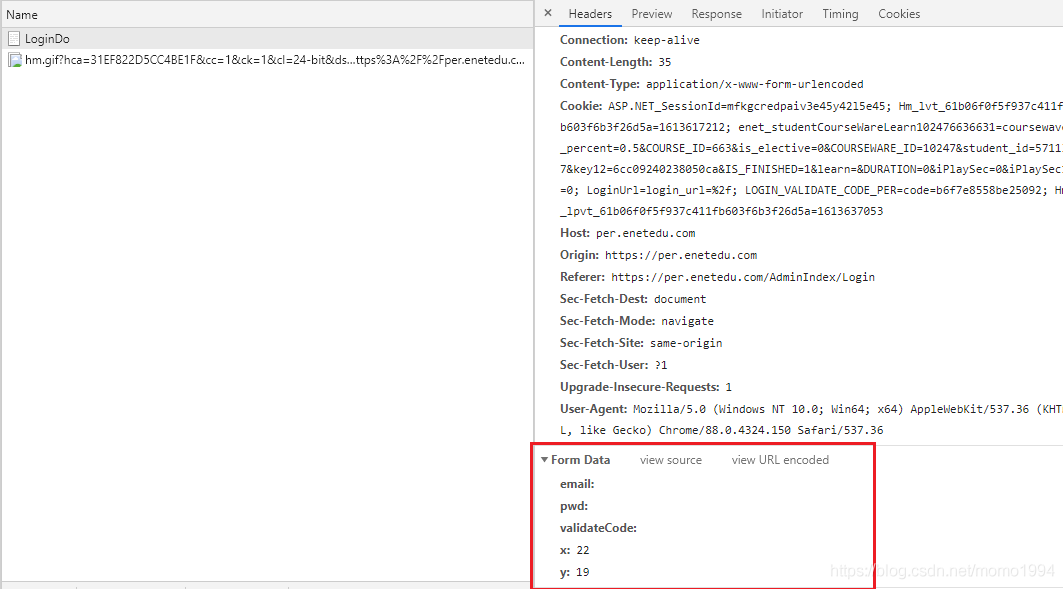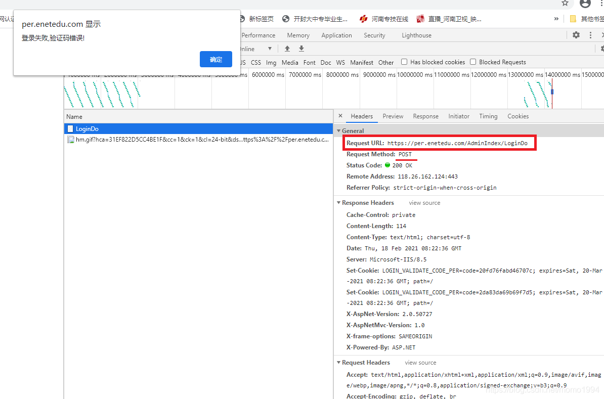 (1) 不填写用户名密码和验证码,直接点击登录,使用Chrome浏览器的Network检查,找到POST地址:https://per.enetedu.com/AdminIndex/LoginDo