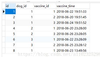 我用了俩个左连接查询使得 t_dog表,t_vaccine表,t_dog_vaccine表这三个表关联了起来