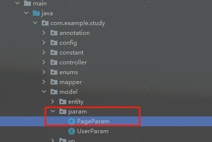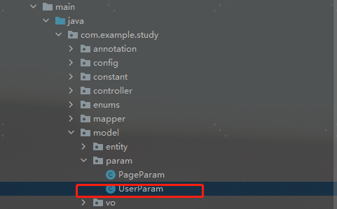 15、创建用户查询条件类UserParam.java继承PageParam(以后分页查询的参数类都要继承PageParam)
