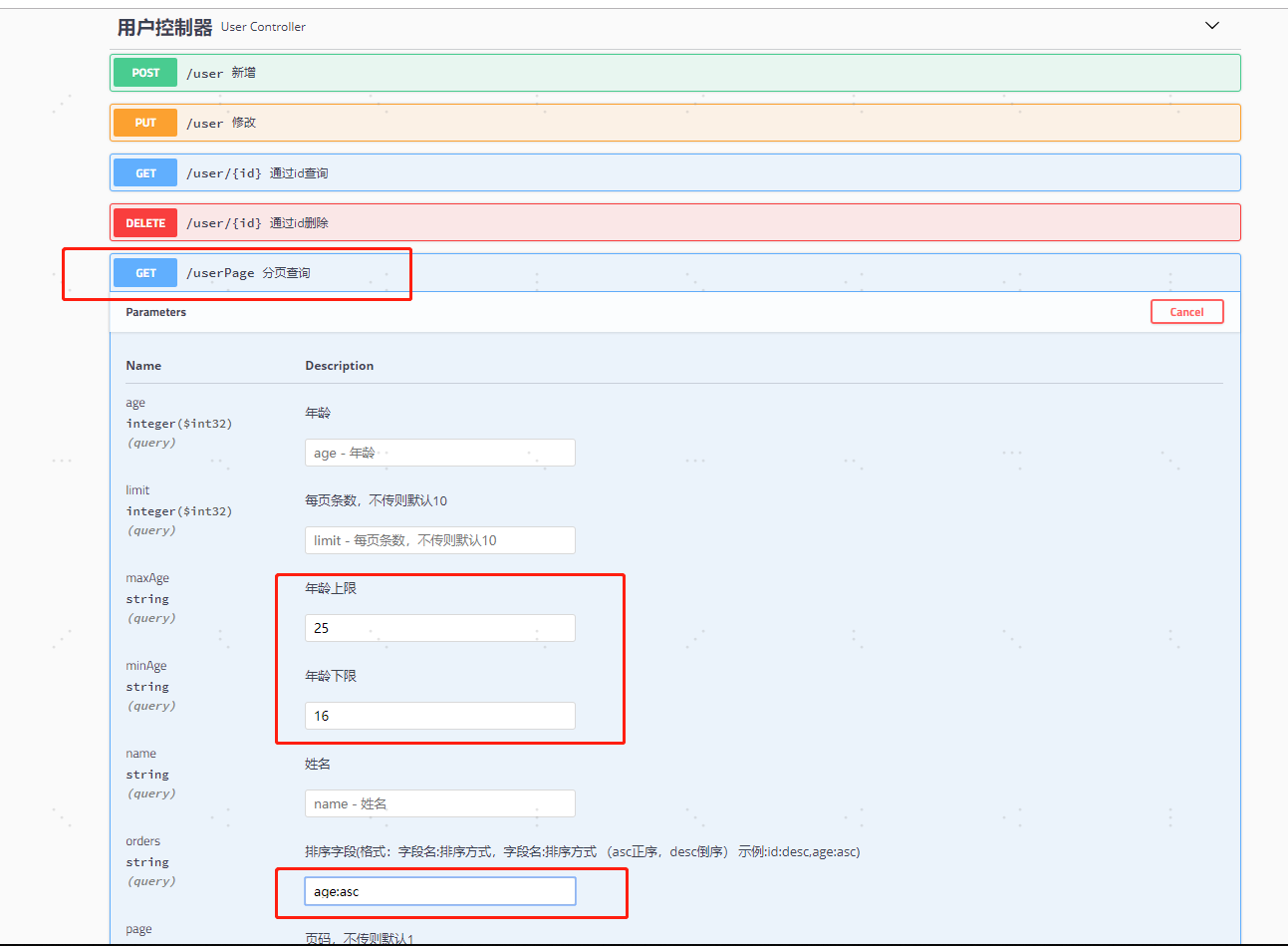 * 假如minAge = 18,maxAge=25,则通过CommonQueryPageUtils工具类会构建出的sql为 18<age AND age>25