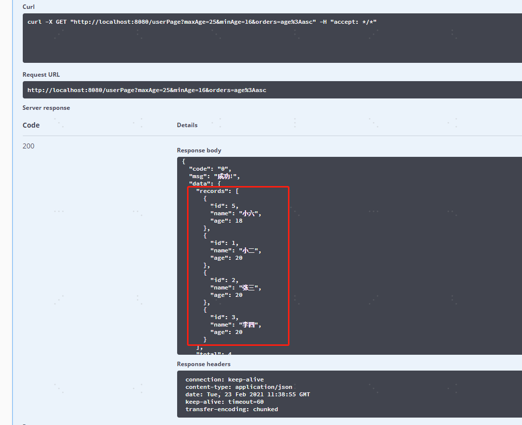 通过上面的返回结果可以看出我们带条件带排序的的分页查询功能是ok的!!!
