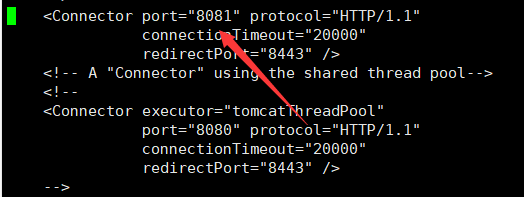我们先做下准备工作,首先准备两个tomcat服务器,分别是8080端口和8081端口,8080端口是默认的,这里进行修改8081的端口,首先我们进入tomcat下的conf目录下,进入server.xml文件进行如下两个地方的修改