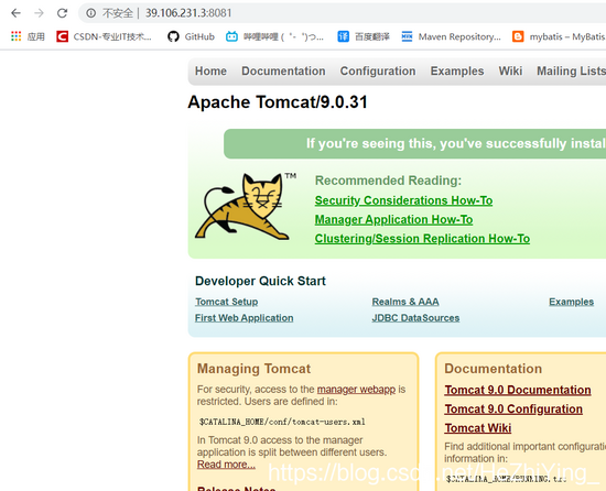 这样我们就有了两个tomcat了,接下来我们启动一下这两个tomcat,看是否都能访问,如果不能访问,可能就是你防火墙的问题, systemctl stop firewalld ,这个命令可以关闭防火墙,如果还不能访问,可能是阿里云未打开端口