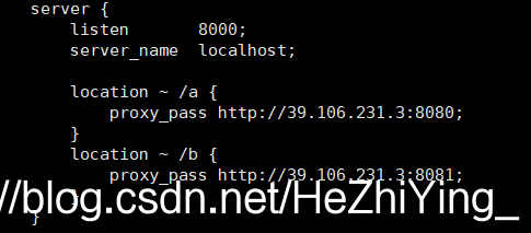 • http://39.106.231.3:8080;意思是代理转发到ip为39.106.231.3主机下的8080服务器