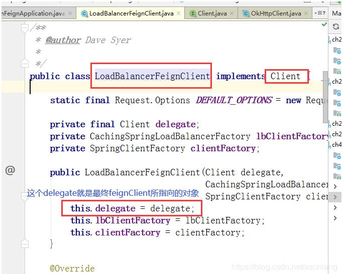 注意:feignClient 这个bean 是一个loadBalancerFeignClient