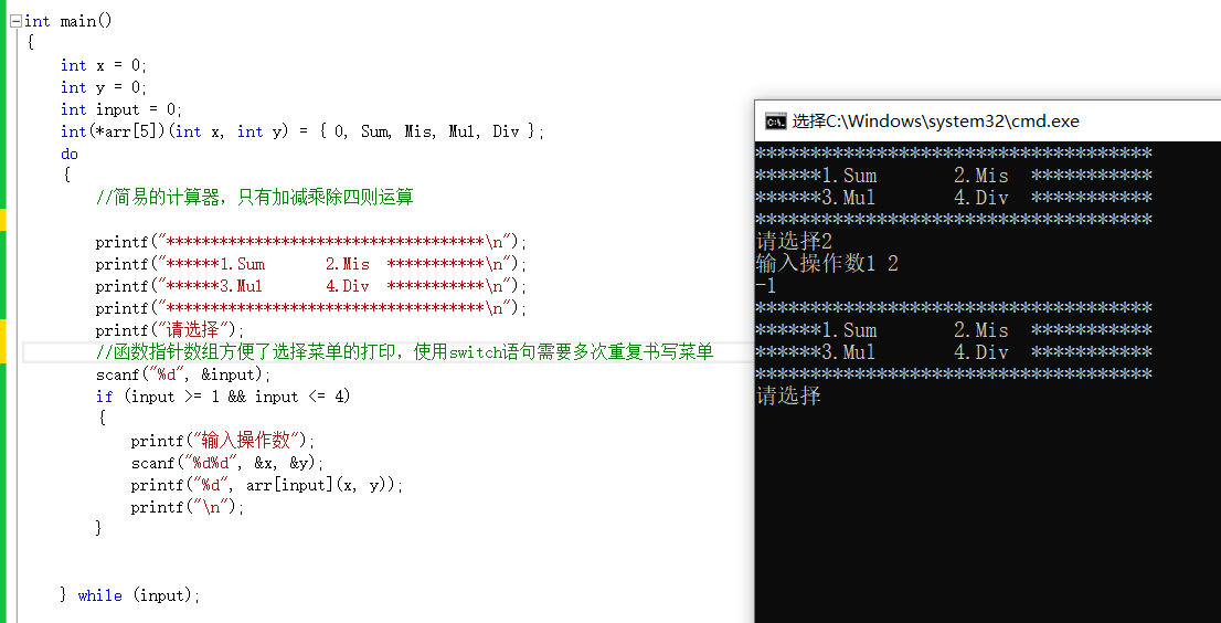 函数指针和数组的结合实例,简易的计算器,这是函数指针数组的应用