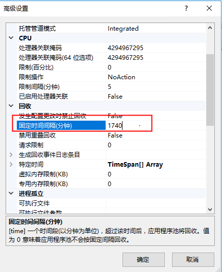 如果网站挂载在IIS里,那么,HttpRuntime.Cache配置超时时间的地方在该网站的应用程序池中,如下图: