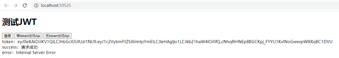 现在我们编写测试页面,这里我们实现三个按钮,登录、带token访问Api、无token访问Api。