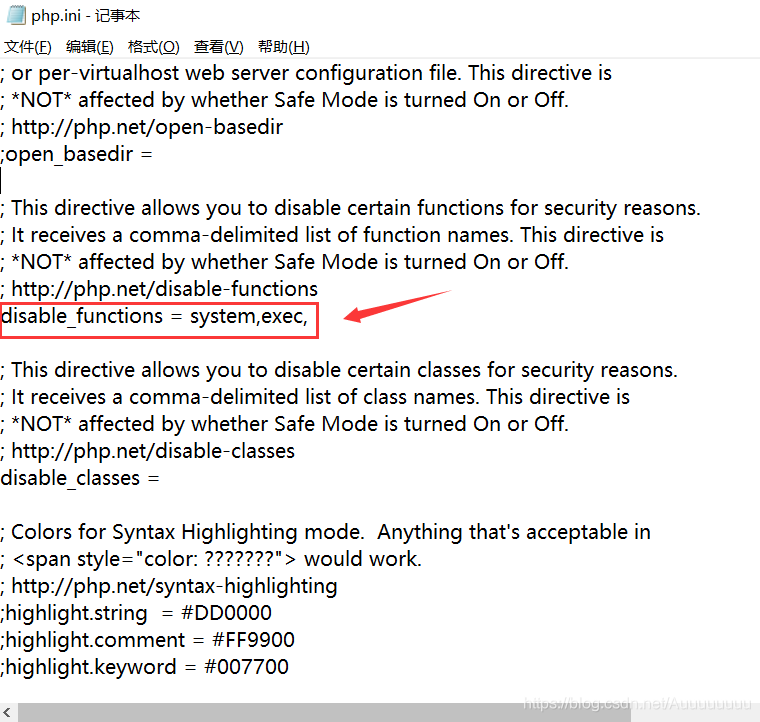 对这些危险函数,可以在php.ini中禁用,进行安全加固