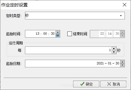 在【调度窗口】通过快捷菜单【添加】把将要执行的实时日志解析作业载入,选中调度窗口的实时作业,点击工具栏【定时】按钮,设置按秒定时,运行周期1秒。